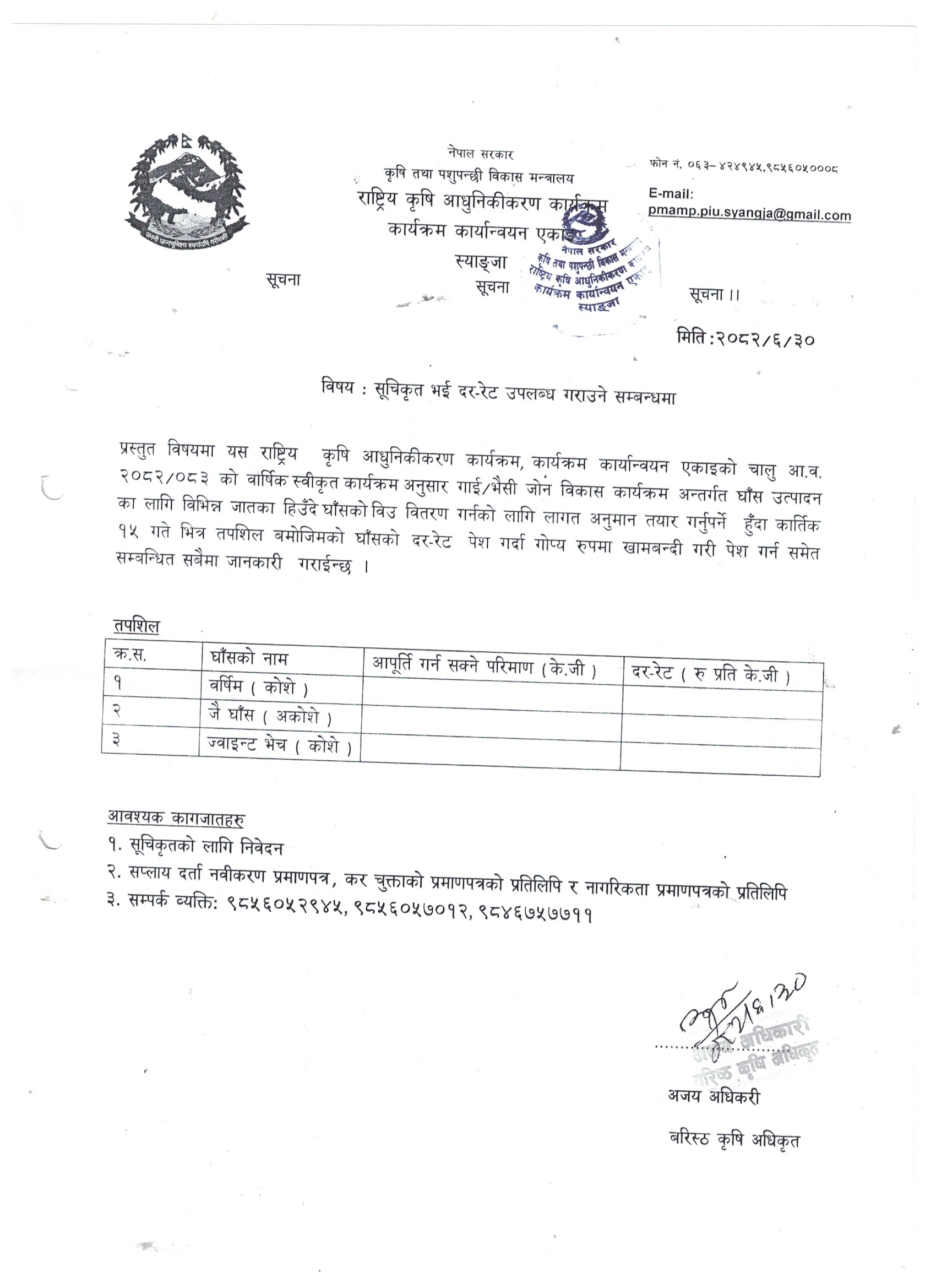 घाँसको बीउको दर रेट पेश गर्ने सम्बन्धी सूचना।। 2082-06-30 2082-07-15