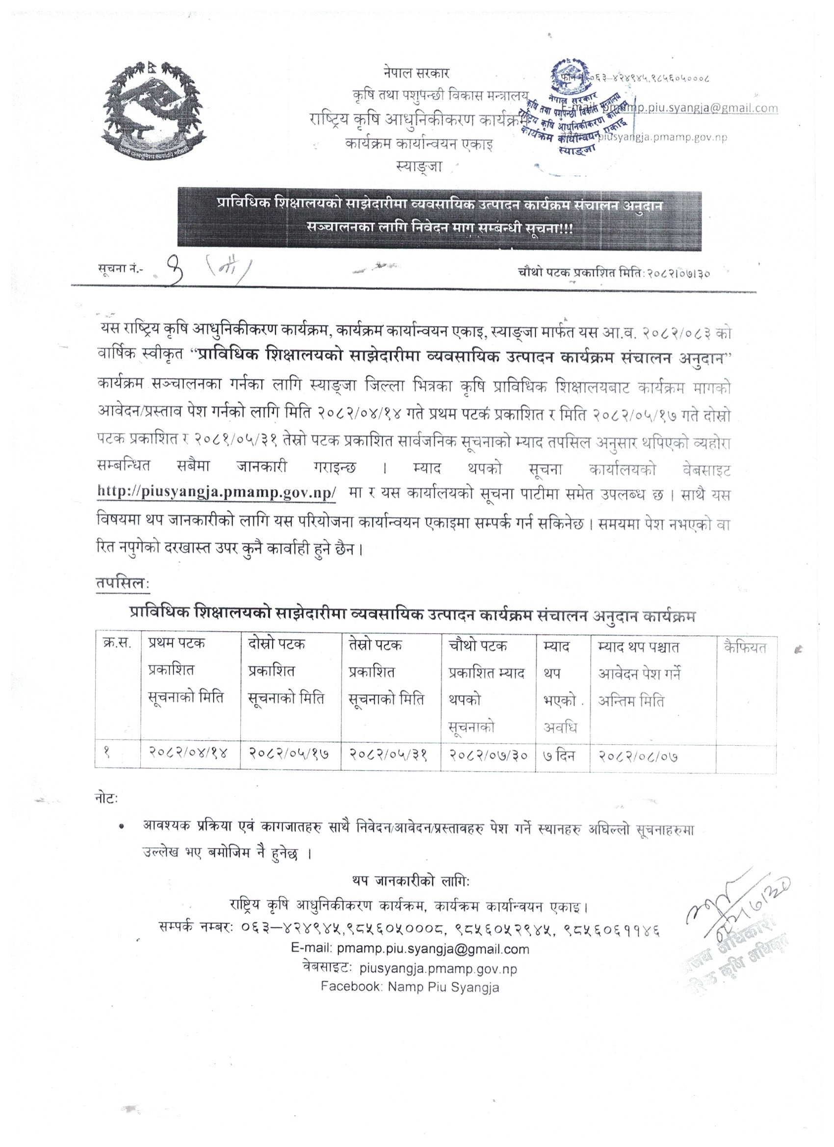 आ.व. २०८२/०८३ मा कृषि तथा पशुपन्छी उद्यमशिलता बिकास कार्यक्रममा छनौट लाभग्राही सम्बन्धी सूचना
