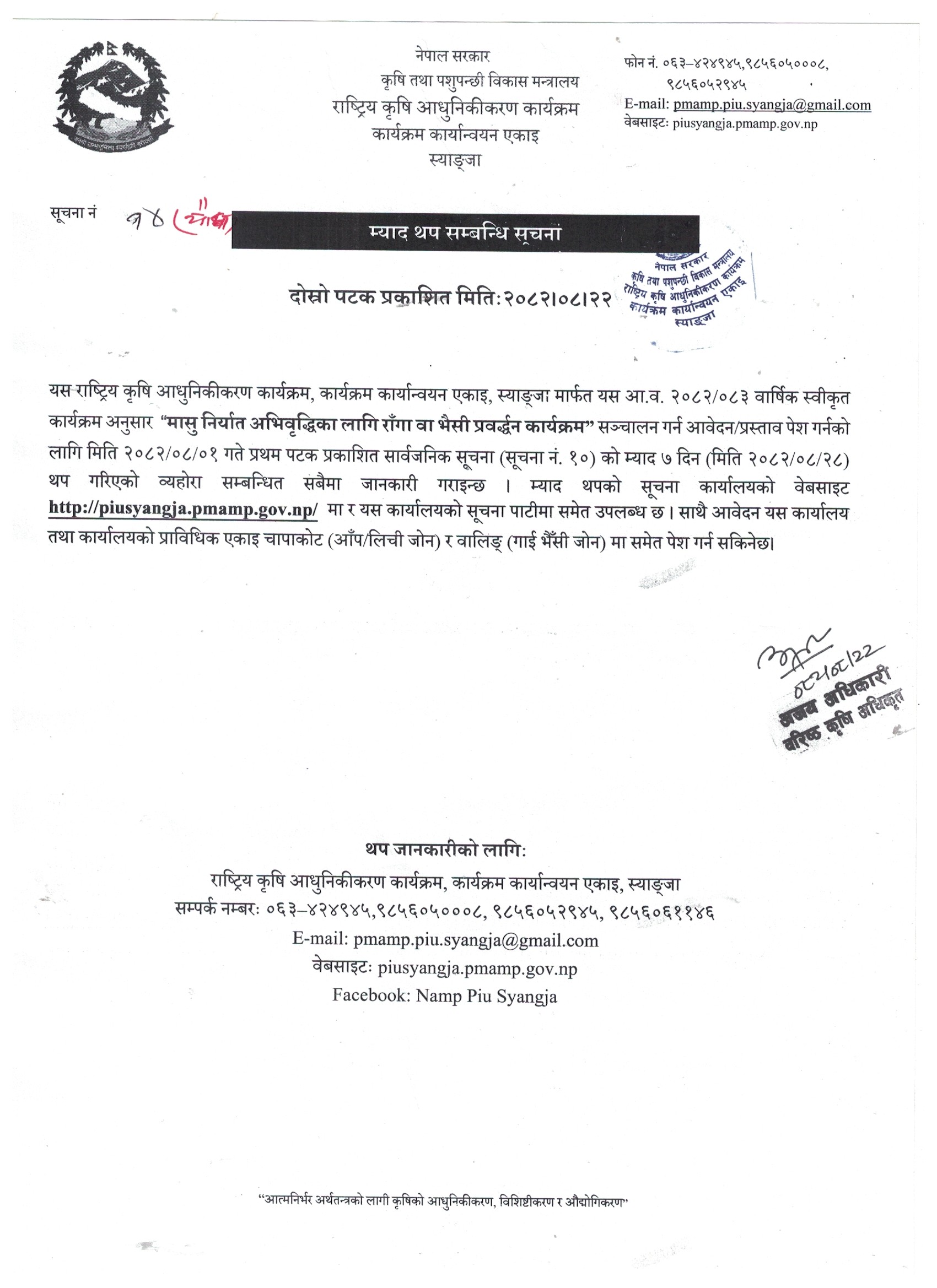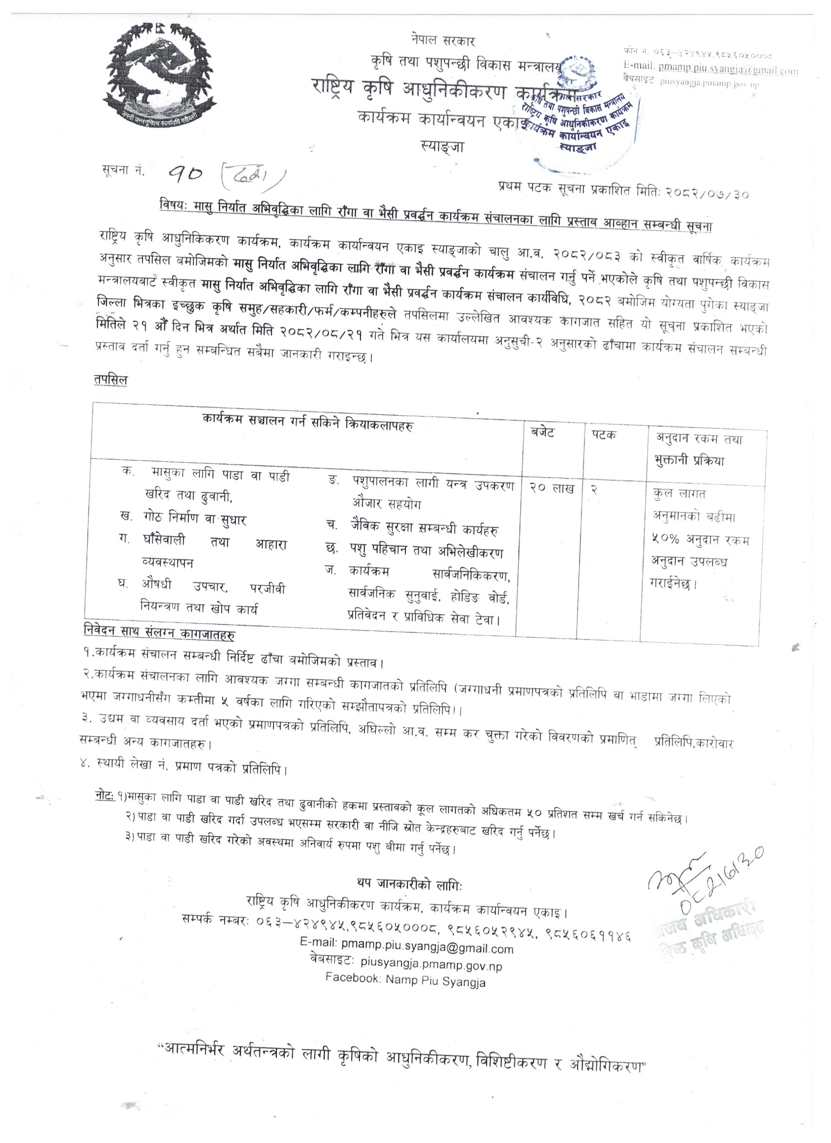 आ.व. २०८२/०८३ को मासु निर्यात अभिवृद्दिका लागि राँगा वा भैँसी प्रवर्द्ध कार्यक्रम सञ्चालनका लागि प्रस्ताव आव्हान सम्बन्धी सूचना।
