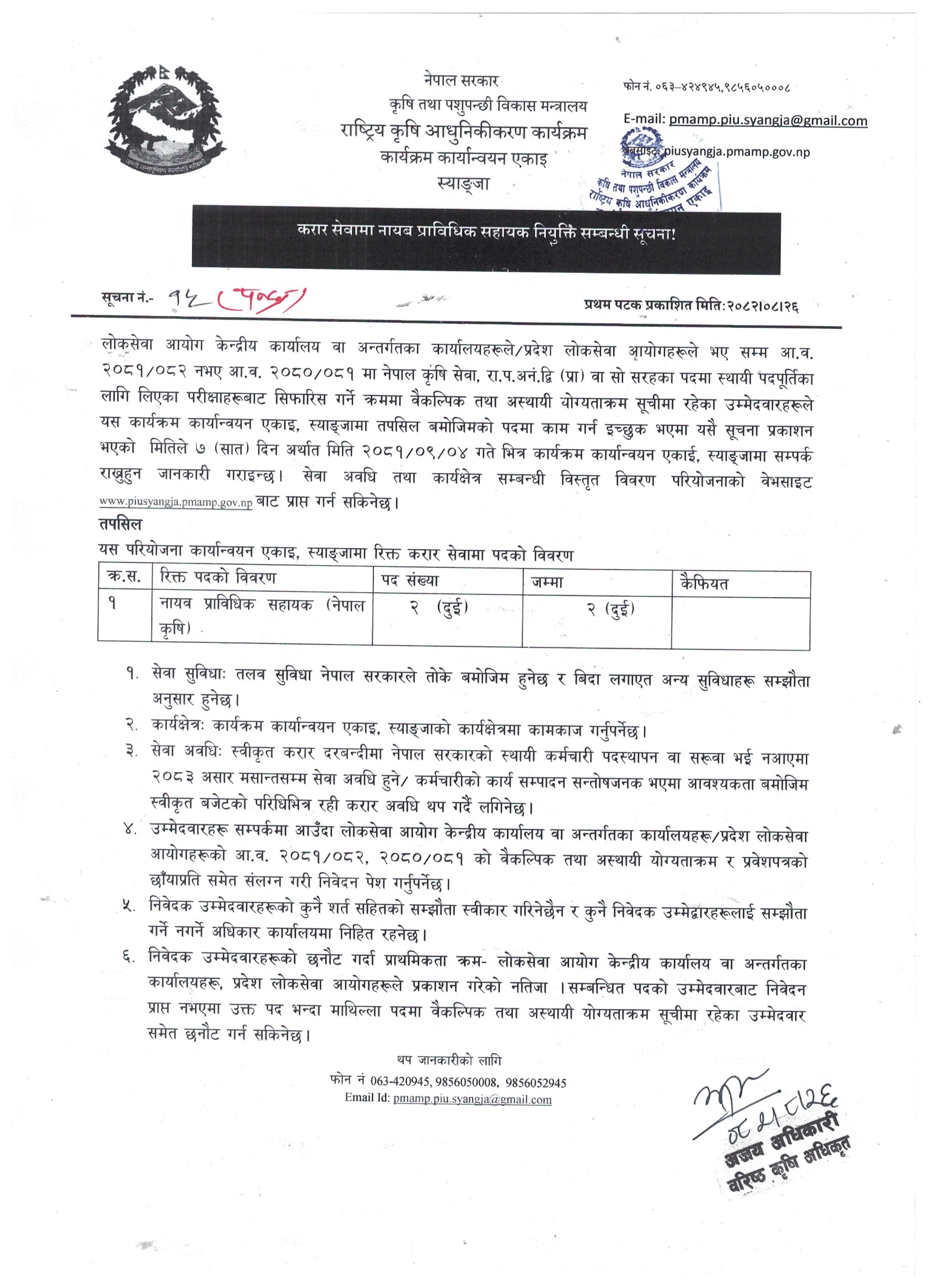 आ.व. २०८२/०८३ करार सेवामा नायब प्राविधिक सहायक नियुक्ति सम्बन्धी सूचना!